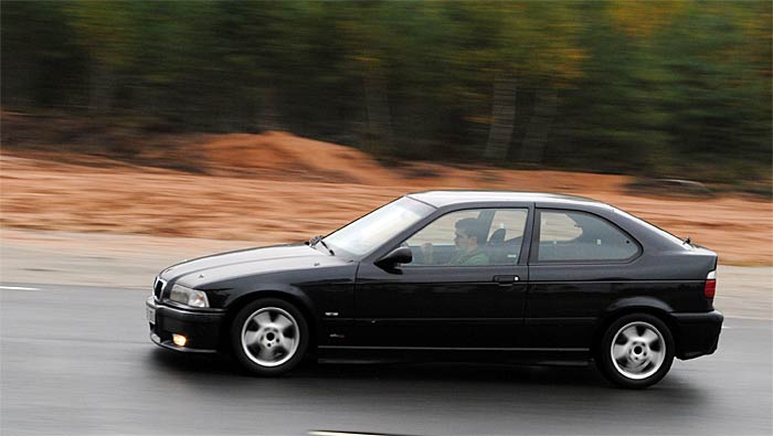 Johan hanterar bmw:n med stor skicklighet