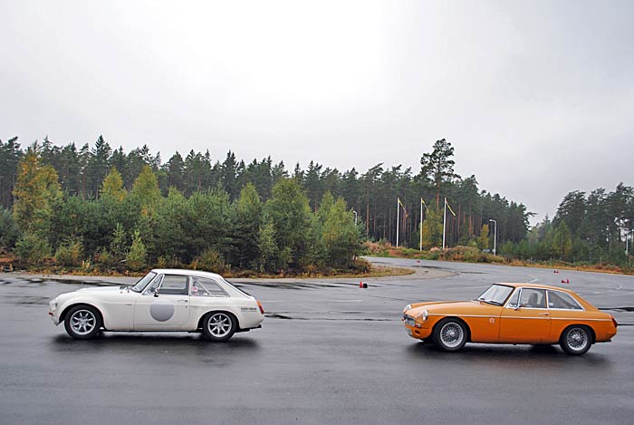 Ande(r)s i sin MGB GTS V8 och undertecknad i MGB GT. Vi tänkte