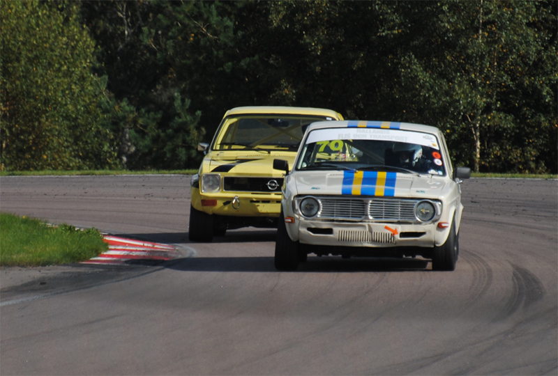 Lördagen var alltså blöt, halkig och farlig. Åtminstone tre krascher där förare fick uppsöka sjukvård blev det. Alla kom dock snart tillbaka. Vi hade en hel del av vårt folk på plats: Claes Andersson och Anders Lotsengård i sina storstånkor i GT upp till -65, Arvid Viktorsson i Opel Ascona i klassen 66-71, Björn Otterberg i Formel Ford och i sportvagnsserien Bosse Johansson i sin Chevron i modsport.