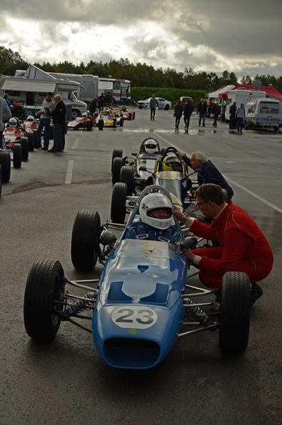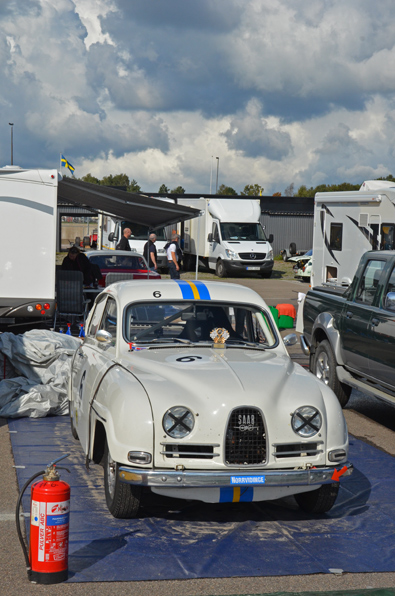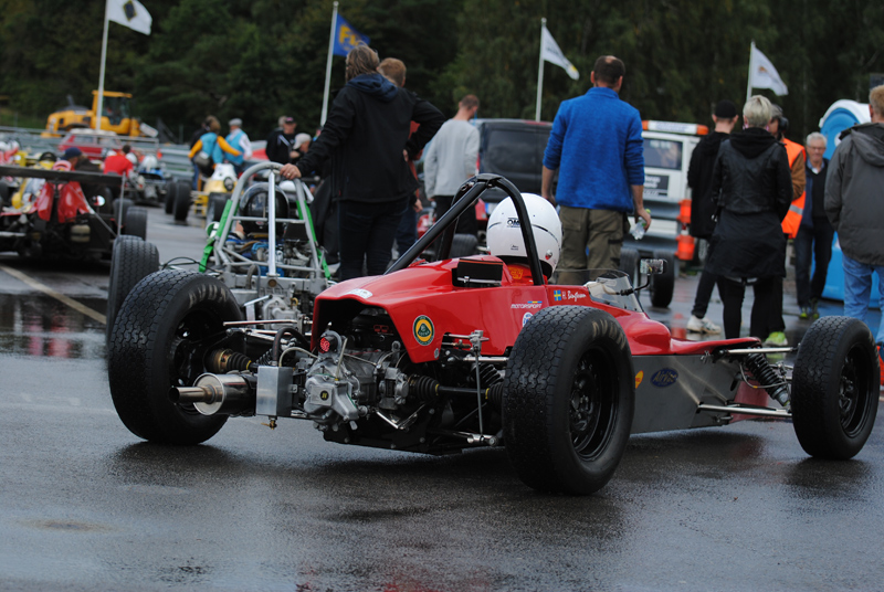 Detta hjälpte Falkenbergshelgen av datum 16-17 till med. Lördagen var speciellt ansatt av nederbörd av regn och understundom hagel. Men det biter liksom inte på halläningarna, Falkenbergstävlingen är ett alldeles speciellt gemytligt och trevligt arrangemang. Det är ofta en bra samling bilar, i år uppåt 260 styck vilket nästan är lika många som SSM, uppdelat på 160 histriska och 100 i spvm, just som på Knutstorp alltså. det är en öppen och åskådarvänlig bana där man rör sig snabbt och fritt mellan olika banavsnitt, och, kanske främst, funktionärsstaben här är alltid så generöst välkomnande. Heder åt alla dessa.