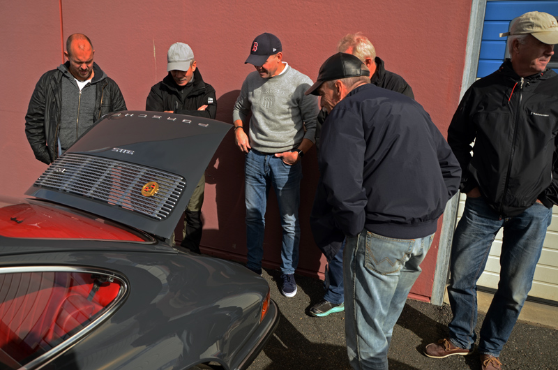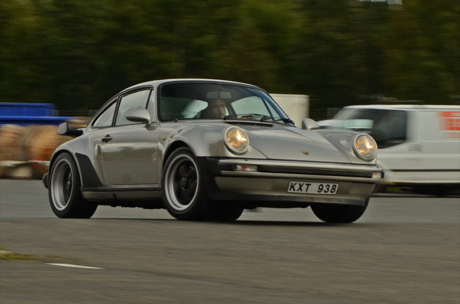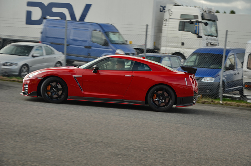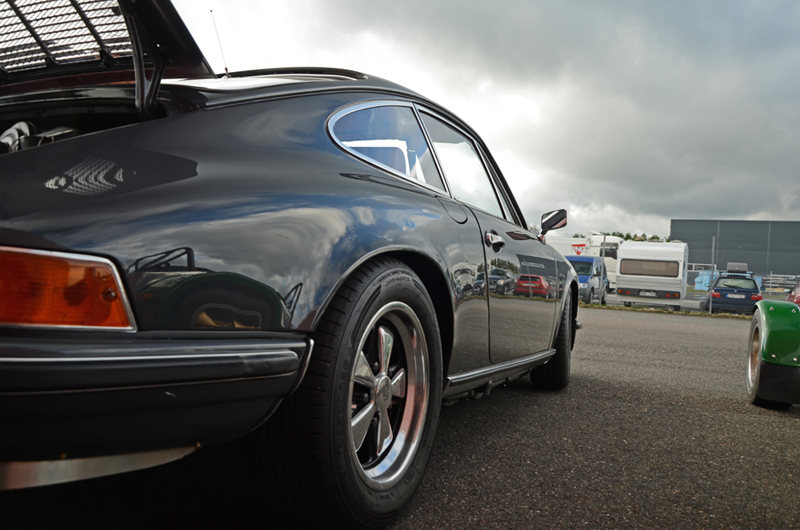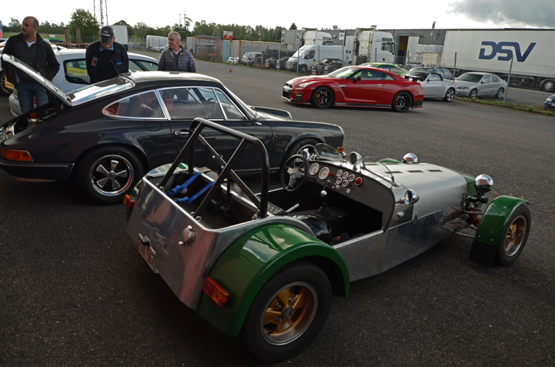 ÖMSOM TYSKT, ÖMSOM ENGELSKT, EN SMULA FRANSKT OCH MINSANN EN NYPA JAPANSKT. ÖMSOM VAR DET NYTT OCH ÖMSOM GAMMALT. ÖMSOM REGN ÖMSOM SOL. ÖMSOM. 15 slalomkörande, en hel del färre än förra årets samling. Måhända skrämde det oberäkneliga vädret. Ömsom tycks oönskat. Men även vid sidan om den förnämligt lagda banan, fanns en hel del som slöt upp för social samling. Bland annat kom Royard kom med sitt nya musku-super-fucking-dunder till Nissan. Dock sparade han besten för Nürburgring och veckan som kommer. Nytt men av gammal vara var Rolfs eleganta fantastiskt renoverade 911 auf 72 - med RS-motor.