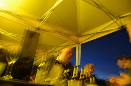 anhöriga till de tävlande. Kvällen var ljum. Husbilens