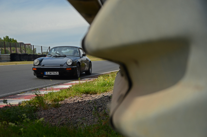 Som aktivt körande fanns bara 18 åkare - en besynnerligt låg siffra då det alltsom oftast handlar om överfulla banträffar på andra håll. Jag delar lånehjälm med Claes (vi har båda glömt), Claes kör fort-fort i Miata mk1, han är medlem i både SSJ och Göteborgs sportvagnsklubb. Vid svkg:s banträffar är det minst 50 bilar och 15-20 på varje körpass. Han uttrycker stor belåtenhet över att få köra så mycket man vill på våra bandagar.