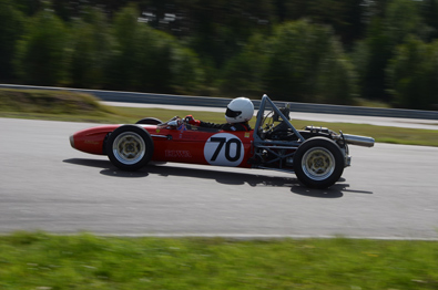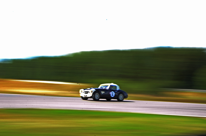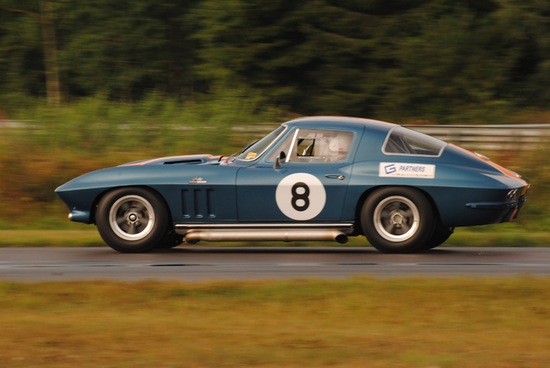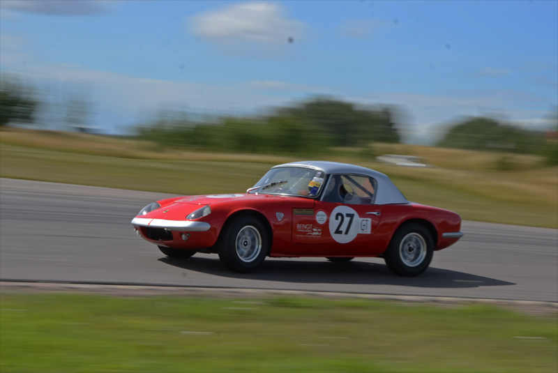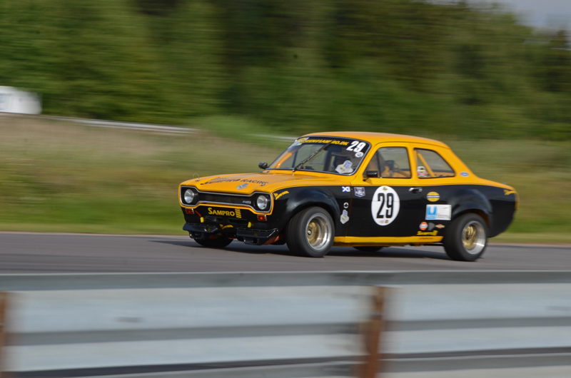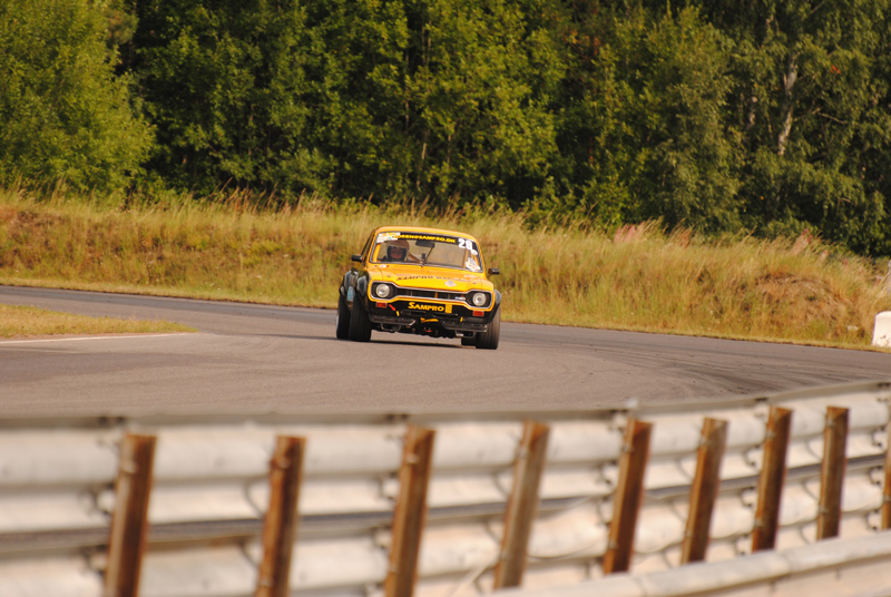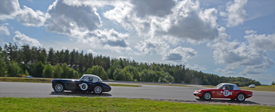 På andra rutan stod Lars Esselius i hiskelig Corvette och när starten gick dundrade han väl förbi på rakan - jag tror att det var så. Tror och egentligen skiter jag i vilket, för när jag stod och inväntade bilarna i depåkurvan var det den där Chevan jag förväntade mig. Men den som kommer, laddande, vrålande och på tvären igenomfarande kurvan i spets är Claes. Det är inte riktigt alltid man upplever hur fort det går när man står bredvid. Nu gick det så att det sjöng i hela området. Och jag måste erkänna att jag blev väldigt glad av att jag lyckades få bra kort på kurvan trots lång slutartid. Corvetten var borta men strax bakom kom Bengt-Åke Bengtsson i sin röda Lotus elan. Ibland skiljde det lite, ibland något något mer, men aldrig mycket. Det var racing on the tippi-toes, ljuvligt att skåda. Claes vann och besegrade för första gången Bengt-Åke.