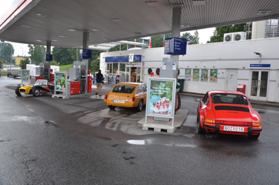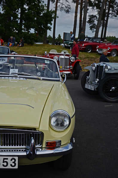 Mantorp har lyckats bygga upp lite go inpassagekänsla - det är trivsamt att stå och se entusiastbilar rulla in genom grindarna. Nu for vi iochförsej raskt igenom dem - vi hade ju en tidpunkt att passa. Sportbilsparkeringen på innerområdet är numera asfalterad. Där ställde vi oss, var på sin plats där denne tillhörde. Dan bland porscharna, Loftis hos Lotisarna och själv parkerade jag mig among MG:s. Av någon anledning har skilda trakter sitt märke, Mantorp drar alltid mycket MG.