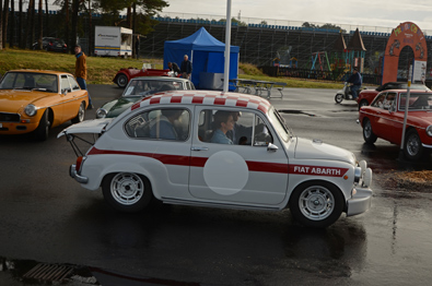 Störst och minst kom samtidigt. Rollsen framfördes av herre i slips och kritstreck. Med mustasch. Några passagerare att fylla ut väldighet fanns icke. - Fast har jag berättat historien om Rollsen och de fyra skinnskallarna som så totalt fyllde upp denna bils inre att den helt tycktes ganska liten, som en 142:a en dag i England. Fråga Ande(r)s eller Loftis. I Fiaten, som var i raceskrud, satt fyra fullvuxna tillsynes bekvämt och godmodigt.