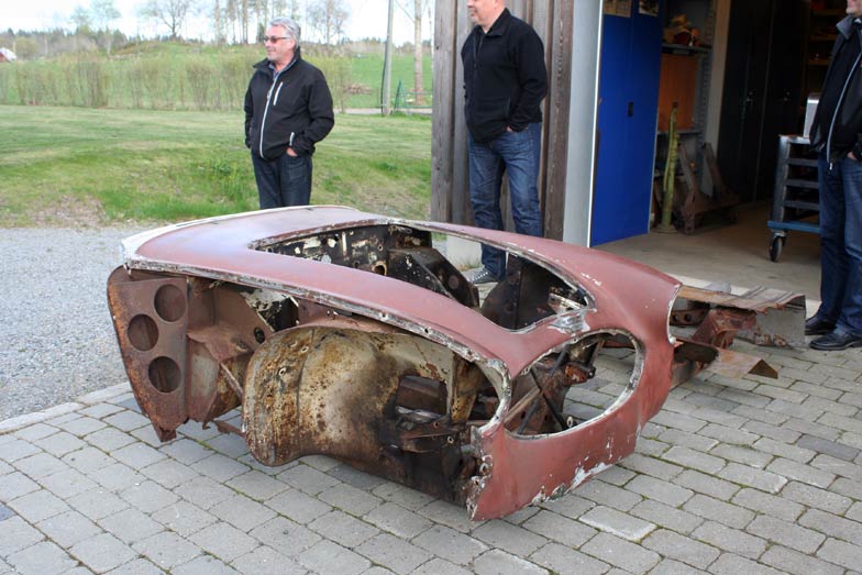 hade ställt upp embryot till nästa Healey-bygge utanför garageanläggnigen