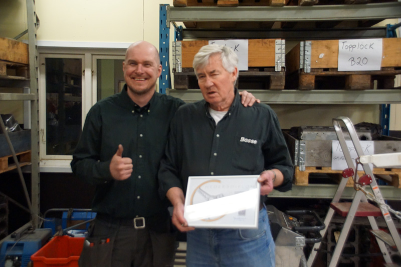 Stort tack till Bo och Jerry vars verksamhet som tack för det generösa mottagandet belönades med SSJ’s hedersdiplom. Andra gången nu. Föregående besök var för så länge sedan att ingen kunde erinra sig året. Däremot CanAm-bilen, som sedermera såldes på auktion i England.