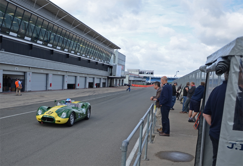 I den gamla "nationella" depån håller Anders Schildt till med sitt lilla team. Hans Austin Healey 3000 är nedgraderad till "pre 63-klassning" vilket bland annat innebär smalare ekerfälgar och däck - vilket gör att det går fortare rakt fram och bredare i kurvorna - lämpligt för herr Sideways. Han kör till sig en 10:e träningstid. 2.36:48 gör han på den 5 857 meter långa banan. Det är av 56 startande. Snabbast är en Aston Martin DP 212, före en Jaguar E-type och en Ferrari 250 GT. Längst bak startar Robert Nyquist och Georg Kjällgren i en SAAB 93B. Den är den enda av sitt slag. I övrigt är det bara Jaguar, Ferrari, Aston Martin, Lotus, Morgan, AC Cobra, Porsche, MG och Alfa Romeo. Och så denna SAAB.