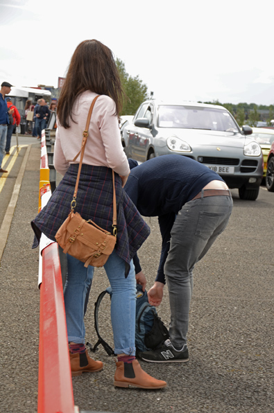 VI TRÄDER FÖRVÄNTANSFULLT IN I helgedomen. För det är andakt, nästan som julottan man aldrig orkar upp till men med en miljard fler intressanta saker. Och så är det ljust och ingen präst. Vi tvekar: vänster till de de gröna parkeringsytorna eller mot den gamla depån? Det blir varken eller, vi tar en sväng ut på gräset, runt en samling Lotus sevenbilar som redan anlänt, (och då är det Lotus seven), en längtansfylld blick på den spjutspetsformade gruppering av Lancia Stratos i vilda kulörer som står för långt bort för oss just nu och så en runda om sydvästra delen av marknadstorget, inom en toalett, innan vi går vidare, in i skarpt läge. In i det snudd på onämnbara.