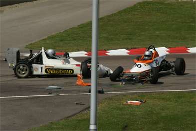 Björn Otterberg blir inblandad i den krasch som främst drabbar Klaus Gylvig (fotosekvens plus nedre: Stefan Larsson)